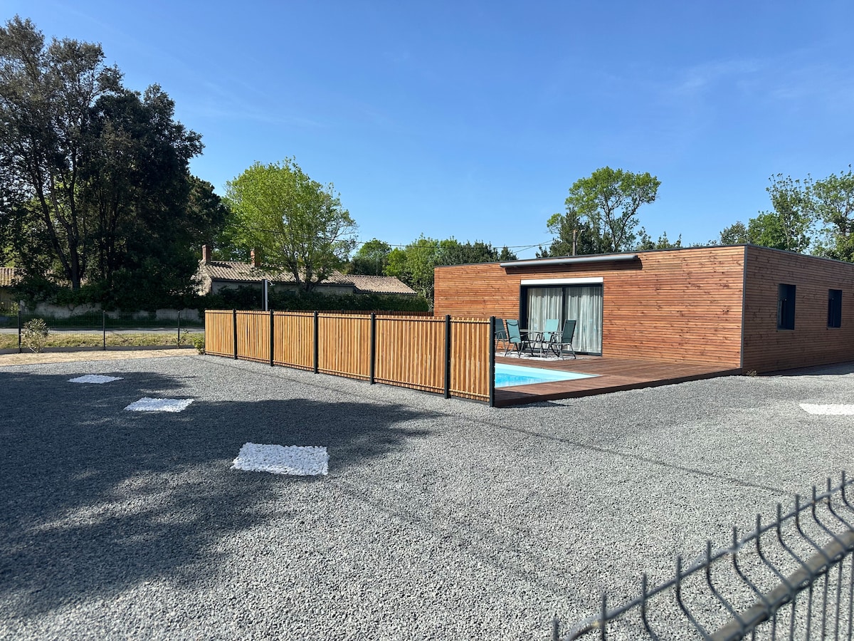 Wooden house of 50 m2, with pergola and terrace by the pool, this accommodation is ideally located for lovers of calm and nature. 2.5 km from Les Nonnes beach and 1.5 km from the city center and its shops, this accommodation enjoys an exceptional view of the marshes and its fauna (storks, herons, birds of prey). This independent accommodation is located on the property of Cécile and Guillaume who will be happy to host you and let you enjoy the best plans in the region.