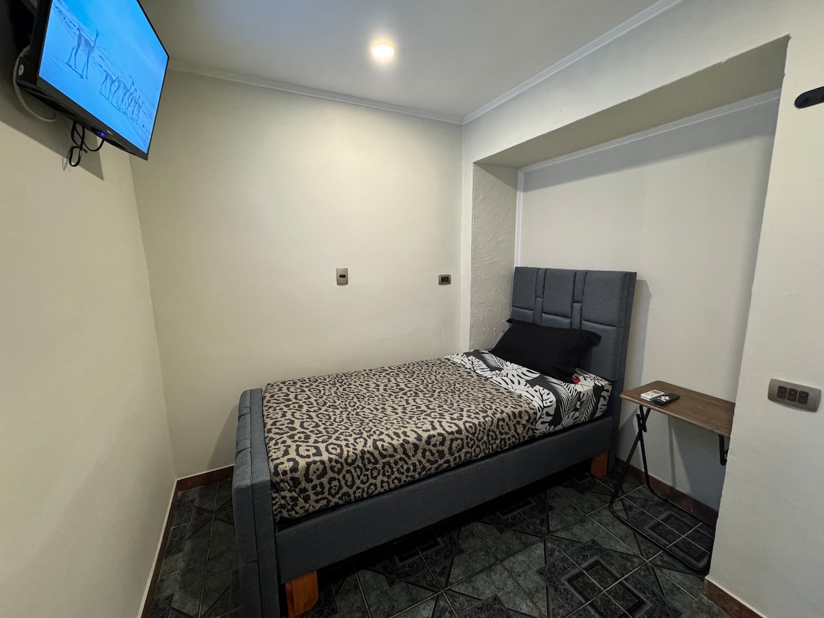 Disfruta de una habitación ejecutiva privada, moderna y confortable en una ubicación céntrica. Equipada con aire acondicionado, TV de pantalla plana, smartv, tv cable y baño privado. Ideal para viajeros solitarios o de negocios que buscan comodidad y tranquilidad. ¡Tu refugio perfecto en la cuidad de Talca.