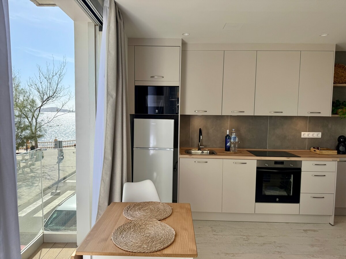 Playa de Salinetas: fantastic apartment completely refurbished and equipped. Living room, kitchen, two bedrooms with double beds, bathroom and laundry room. It has a Samsung 55" SmartTV, Samsung combi refrigerator, induction stove, oven, microwave, washing machine, clothes iron, clothesline, etc. Less than 40 meters from the beach and promenade, you will have direct access via a pedestrian walkway. A safe, quiet environment, very well connected by public transportation, and free parking.