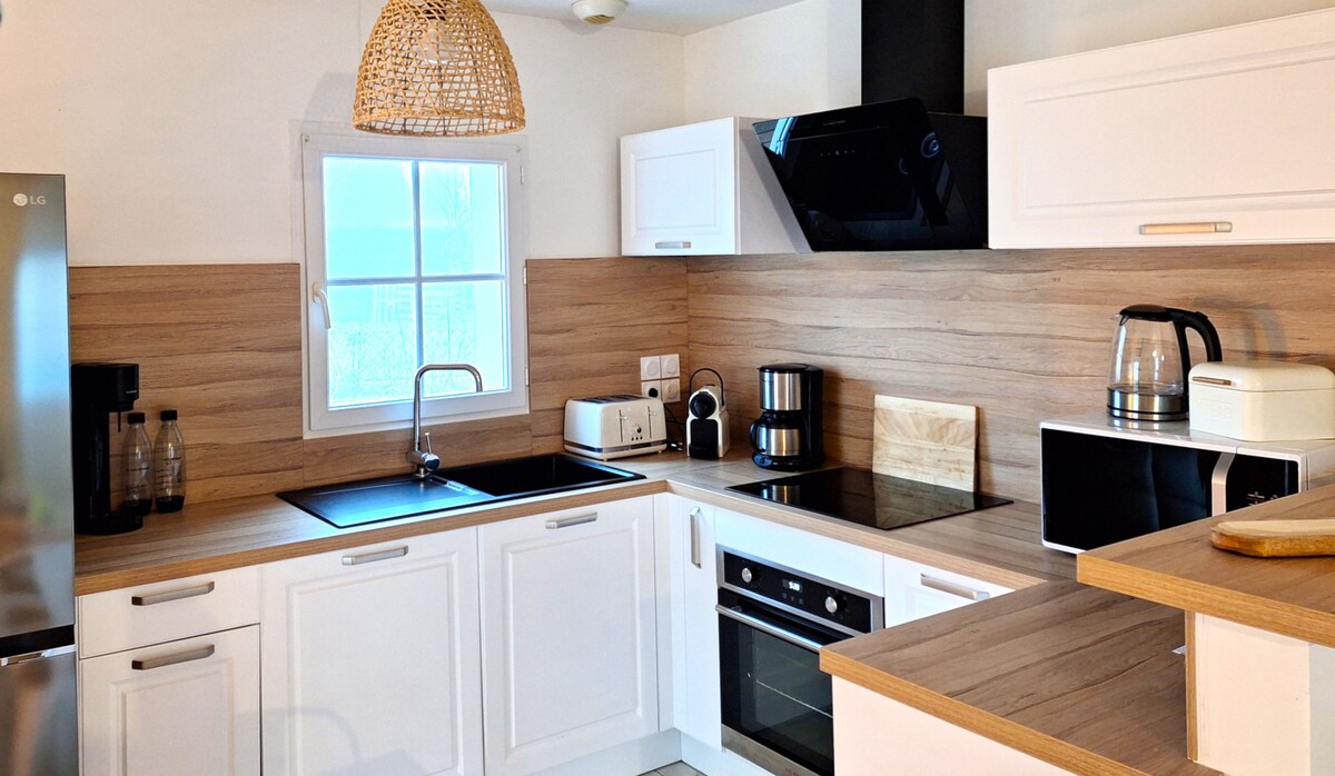 Confort et paisibilité au milieu de la nature. Nous aurons le plaisir de vous recevoir dans un studio spacieux de 27m2, attenant à une maison neuve, dans une propriété, à la campagne. Composé d’une pièce de vie avec un canapé confortable ainsi que d’une cuisine, vous avez accès à un coin chambre, doté d’une TV, et à une salle de bain. > Matelas NEUF soutien Ferme ép. 23 cm (mars 2025) > Mise en service du clim réversible en décembre 2025 > Accès Free tv pour avoir accès aux chaines.