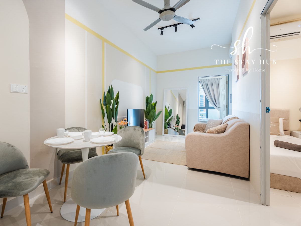 Explore our cozy studio, which can accommodate 2 to 3 people with a queen bed and a sofa bed. Only a 15-minute drive from KLIA T1/T2, the place is surrounded by many restaurants, fast food branches, groceries, and laundry shops, all within walking distance. Savor all the amenities, including the kids’ playground, BBQ area, gym, and swimming pool, with 24/7 security. * Unavailable drop your luggage before check in hours.Due to building designed, need to walk 10 steps staircase to get elevator.
