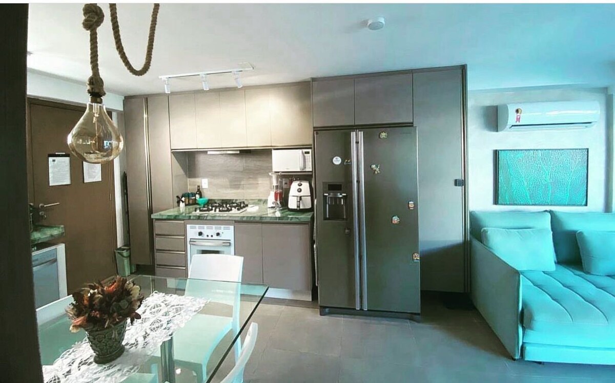 Beautiful, extremely cozy apartment, with style and functionality for you to enjoy with friends and family on one of the most famous beaches in Brazil. Renovated, the "Flat de Charme" is a project by the architectural firm of Claudio Portela and Vera França. Balcony with glass curtain, air-conditioning in the rooms, Smart TV, etc. (all 220Volts). Enjoy all the natural wealth of the southern coast of Pernambuco and all the infrastructure of Carneiros Beach Resort.