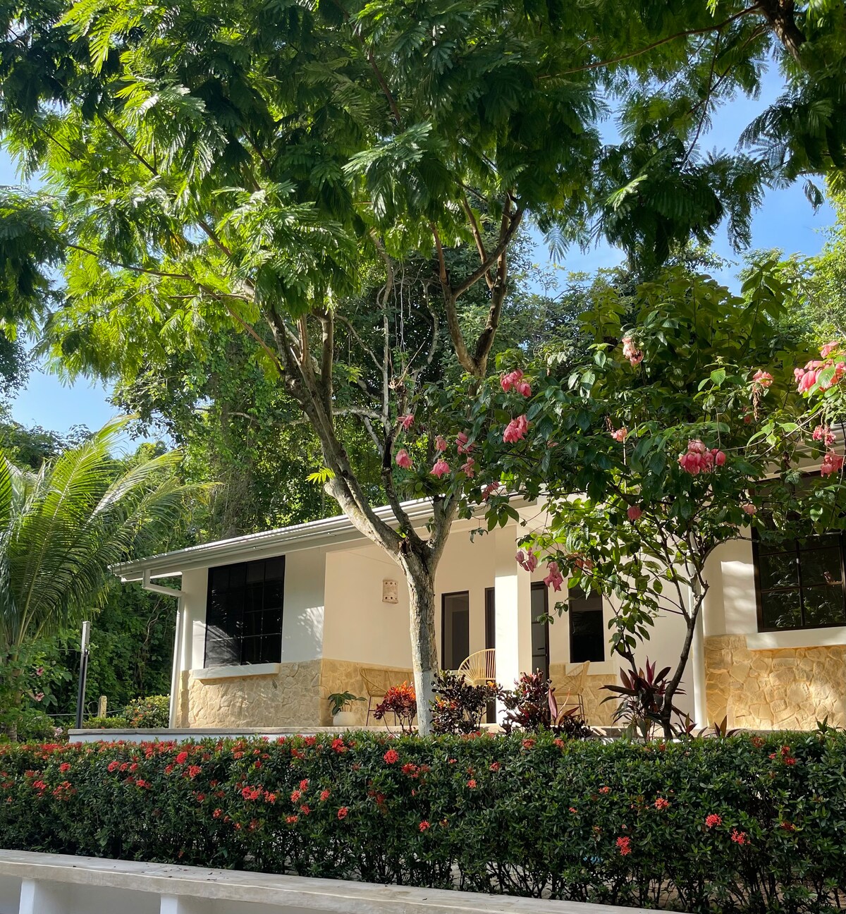 Beautiful new furnished vacation home. Two separate rooms with queen size bed fitting 4 pax. 👌 Close walking distance to the beach and restaurants in Avellanas. Spacious living/kitchen area. Big side by side refrigerator with icemaker bringing you shopping to the minimum. Kitchen full equipped wit coffee maker, blender induction stove. Natural deep stone Swimmingpool with waterfall.