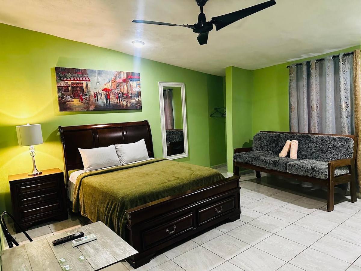 Relájate en esta escapada única y tranquila. Climatizado, A 15 minutos de la playa y a 12 del centro, centro comercial y casino a 5 minutos, lavandería y restaurantes , tiendas de conveniencia a 2 cuadras, limpieza y seguridad garantizada, 3 smart Tv con IZZI, horno microondas, frigobar, plancha, secadora de pelo, licuadora, servicio completo de café, hielera, asador, periquera, íntimo bar con sala.