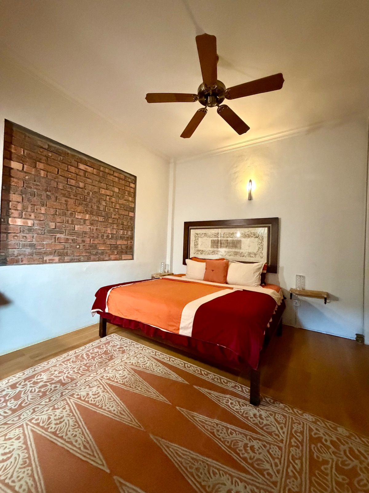Experience stunning architecture with panoramic views of lush paddy fields and Mat Chincang Mountain. This package includes two bedrooms with ensuites: Villa Anjung, featuring a private living area and mini pantry, and Teratai Studio, a queen bed and three bunk beds. Relax in the 24'x10' infinity pool and enjoy the architecturally stunning Serambi living and dining area. For larger groups, please check our other listing to book the entire villa, including Teratai Dormitorio with four queen beds