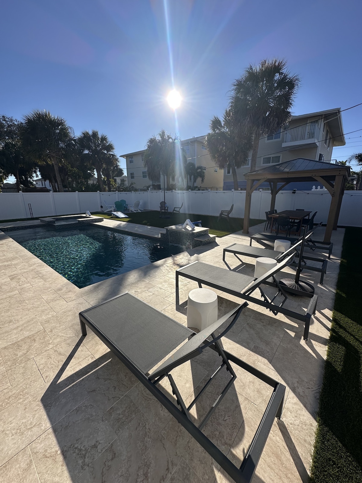 Luxurious 3BR/3BA fully furnished new home that sleeps 11. Enjoy the gorgeous ocean views with two large balconies, perfectly located across the street from the beach, Caddy's restaurant and walking distance to several diverse options, and a 15-min walk to John's Pass (jet skis, fishing, restaurants, and more!) Amenities: - Smart TVs in all rooms - Fully equipped Kitchen - Gas grill - Beach accessories - Board Games - Family friendly