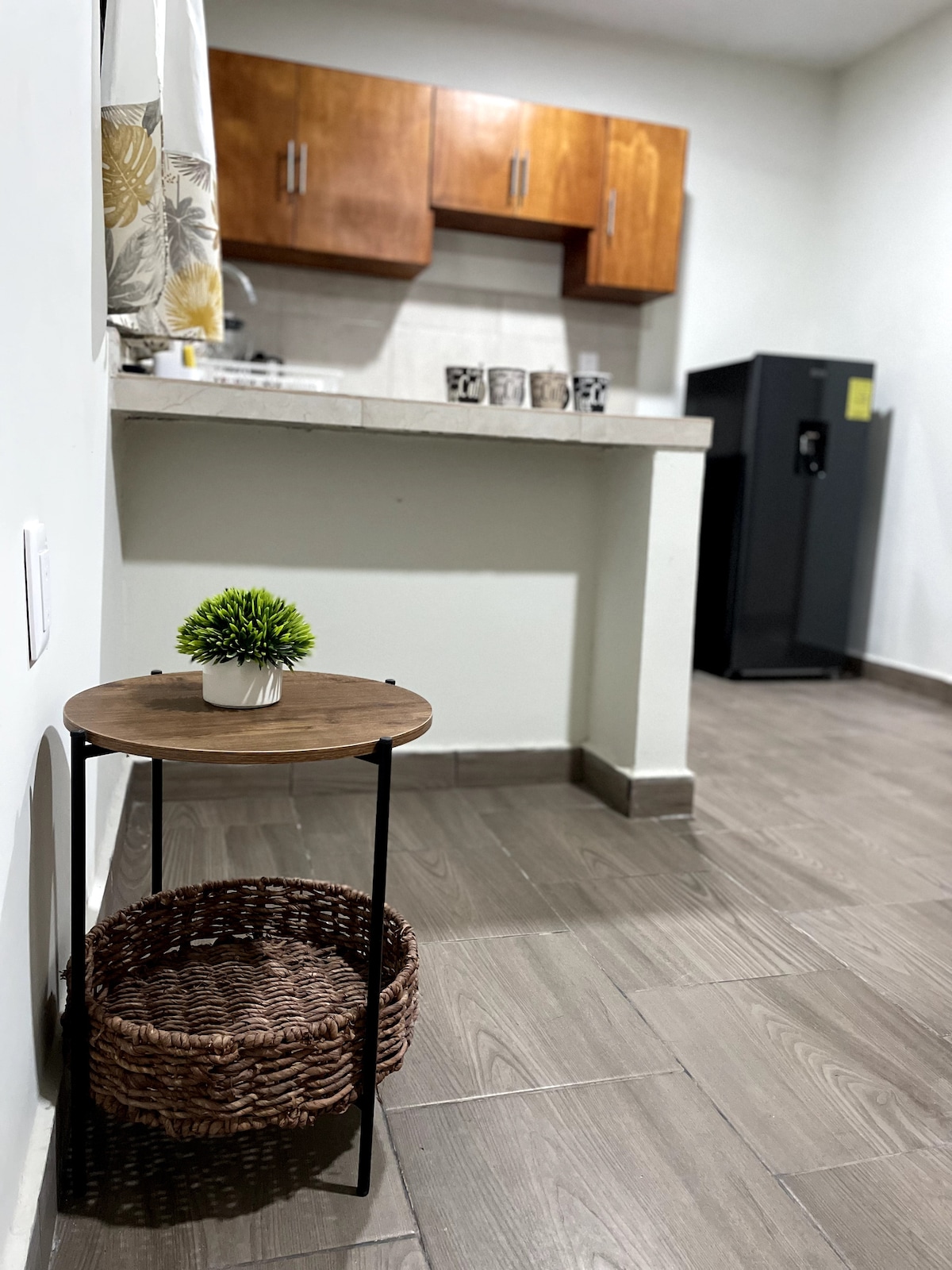 Comfortable and modern mini apartment on the ground floor, located in a residential neighborhood behind the UAT, 20 minutes from the beach and entertainment center in Laguna del Carpintero. It has a double bed, work area with WiFi, private bathroom, air conditioning, kitchen with minibar and microwave oven. Independent self-contained entrance. Invoices are issued