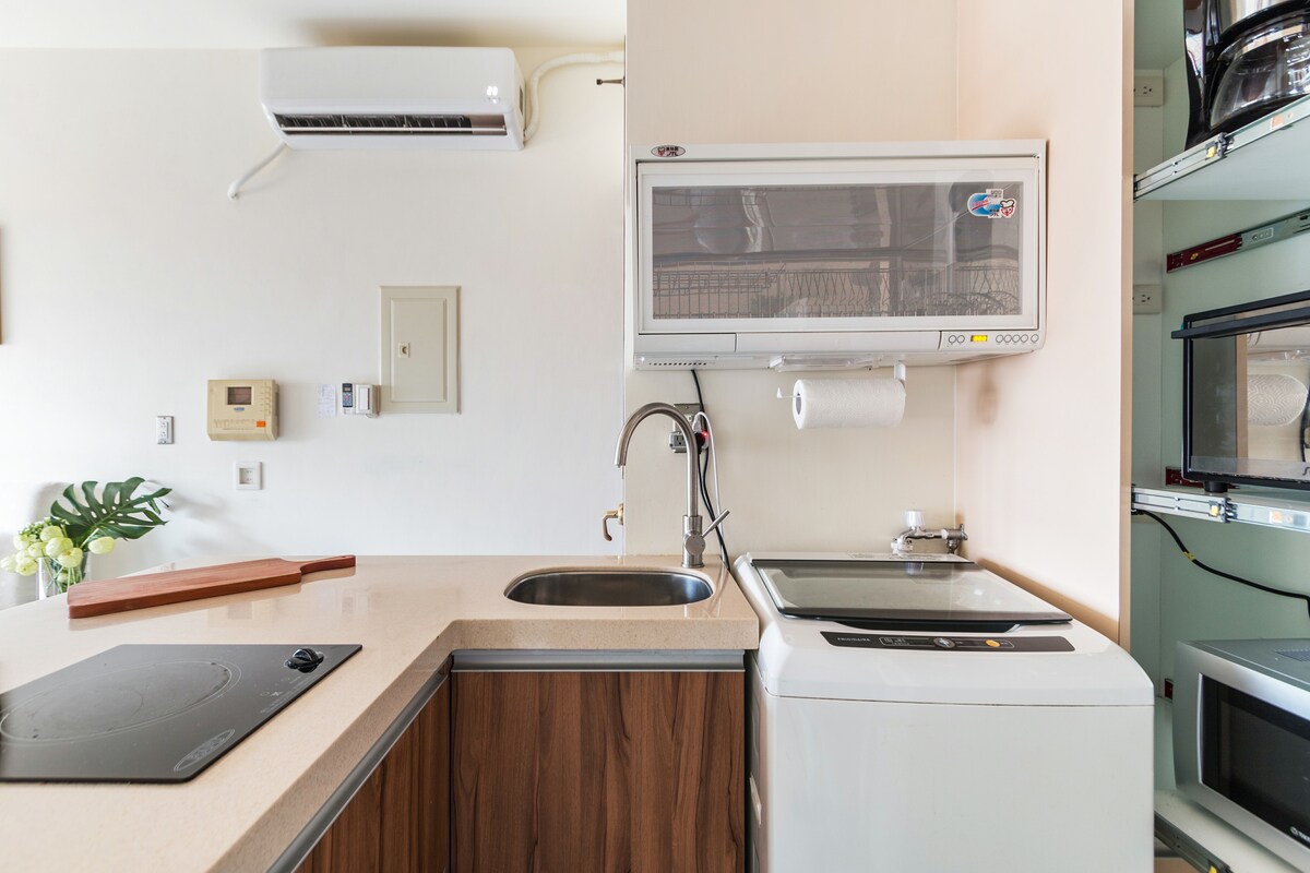 A nice self check-in, highrise studio apartment in Tamsui Taipei. Suitable for long stay travelers. Free WiFi access. All your personal space. You can cook and wash clothes at the apartment. Also, there is a fitness center and outdoors swimming pool (Summer time limited: Jun~Sep).