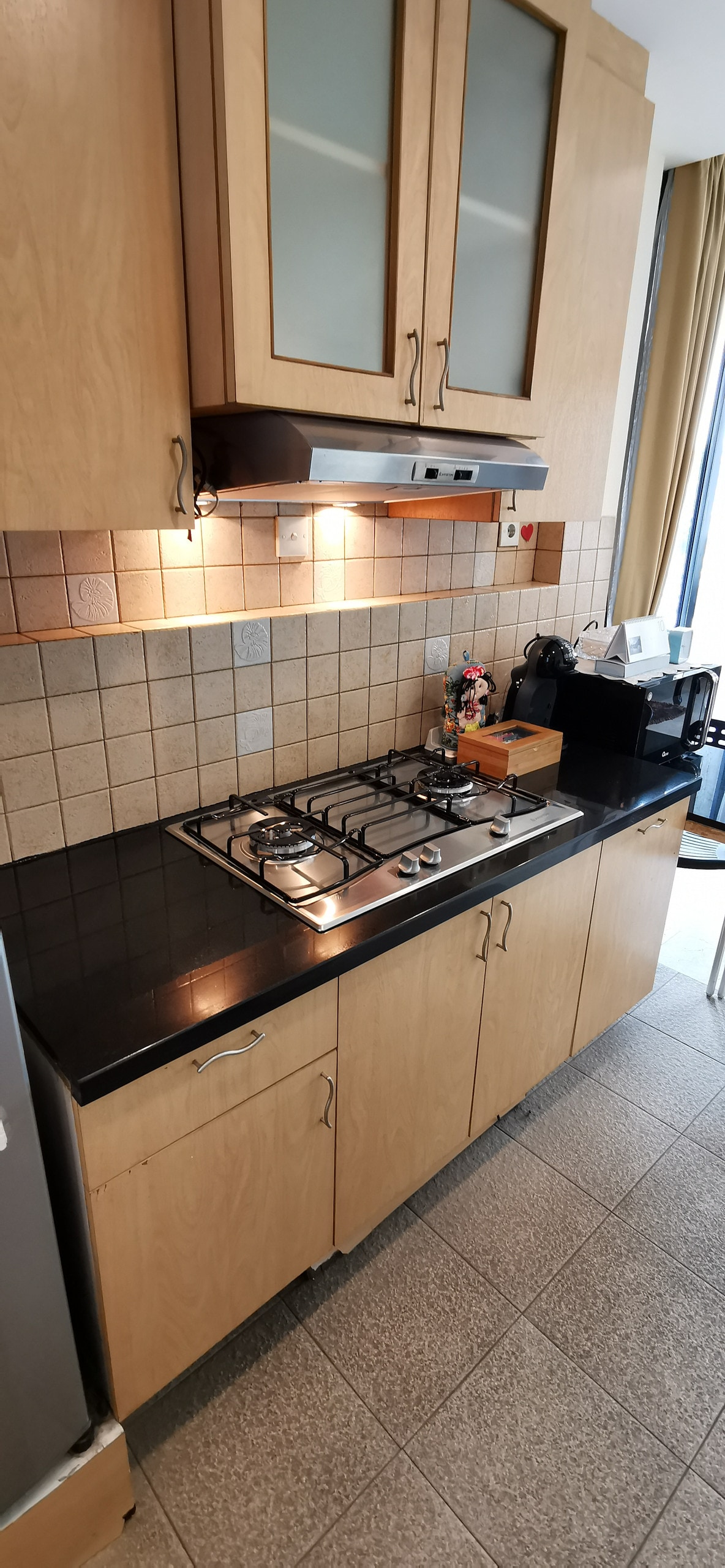 An elegant 24sqm studio in Jakarta's center, blending style and convenience. Includes kitchen, fast Wi-Fi, air-purification, 43" smart TV, sound system and Netflix. It is ideal for various stay types, with contactless access and amenities like pools, jacuzzi, gym, and basketball, Now features a Reverse Osmosis dispenser & food waste disposal, The picture shows a gas stove that has been replaced by an induction cooker (to follow the apartment guidelines for fire hazards)