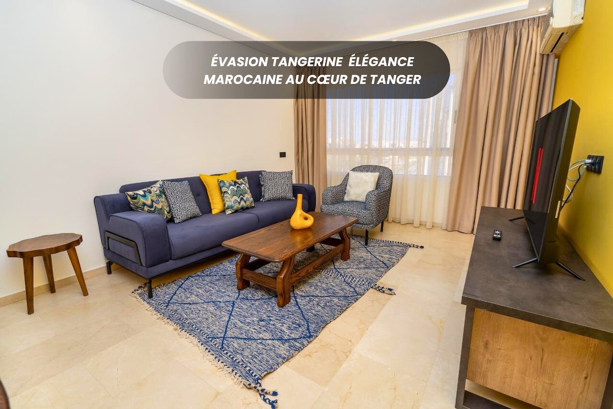 PLEASE READ BEFORE BOOKING For a unique stay in Tangier, we offer you this modern apartment, with stylish living room and balcony. Sleep well on memory-foam pillows and hypoallergenic bedding. Quiet A/C, strong Wi-Fi, fully equipped kitchen, washer. 55″ QLED TV for movies and sports. Secure entry and elevator. Walk to cafés, shops, and the Medina. to ensure a healthy and relaxing environment. Important note: The apartment is intended only for families, married couples, or same-gender friends.