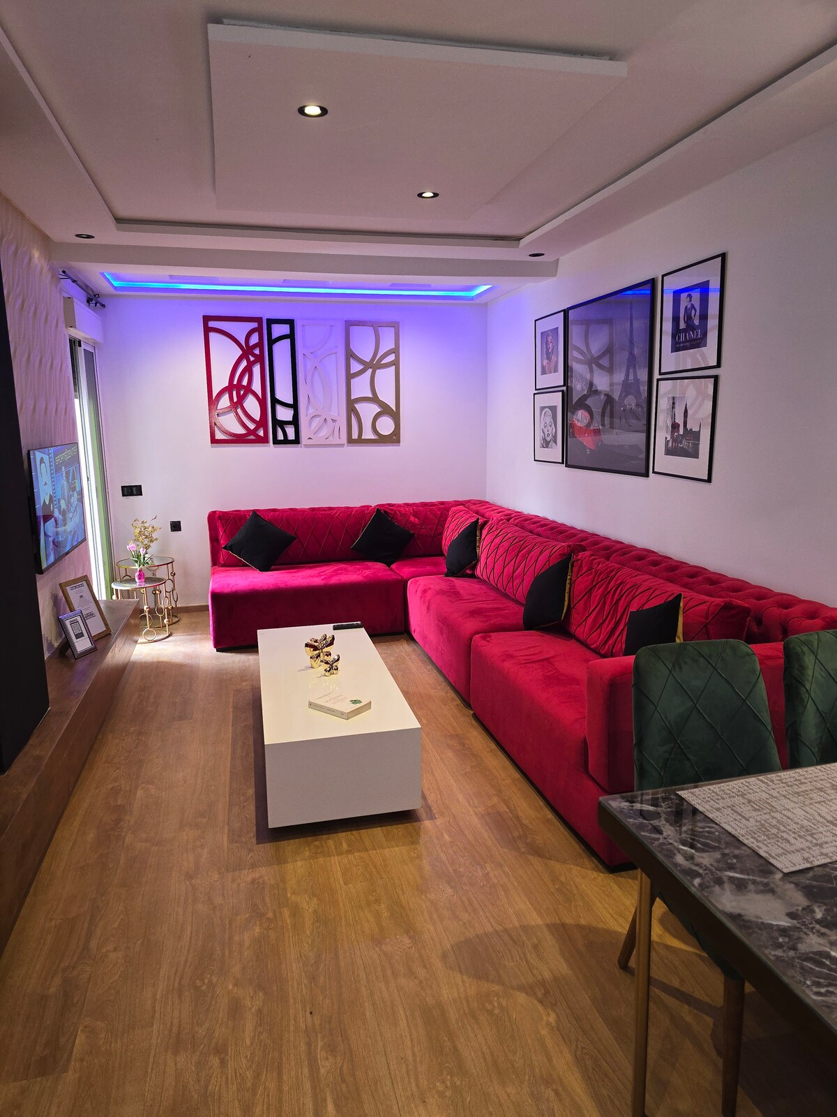 Ashraf Home offers an exceptional luxury stay in a modern and refined apartment within secure residence with private Parking. Appart Recently renovated and tastefully furnished, it delivers premium comfort,Wi-Fi🛜,Ideally located, close to beaches, shops and cafes, 8 minutes from the airport, 2 min from the Grand Stadium, 5 min from Achakar Beach🌊 and 11 min from the city center. The features two spacious living rooms, a fully equipped kitchen, Bathroom and two elegant bedrooms, Book now ! 🎉