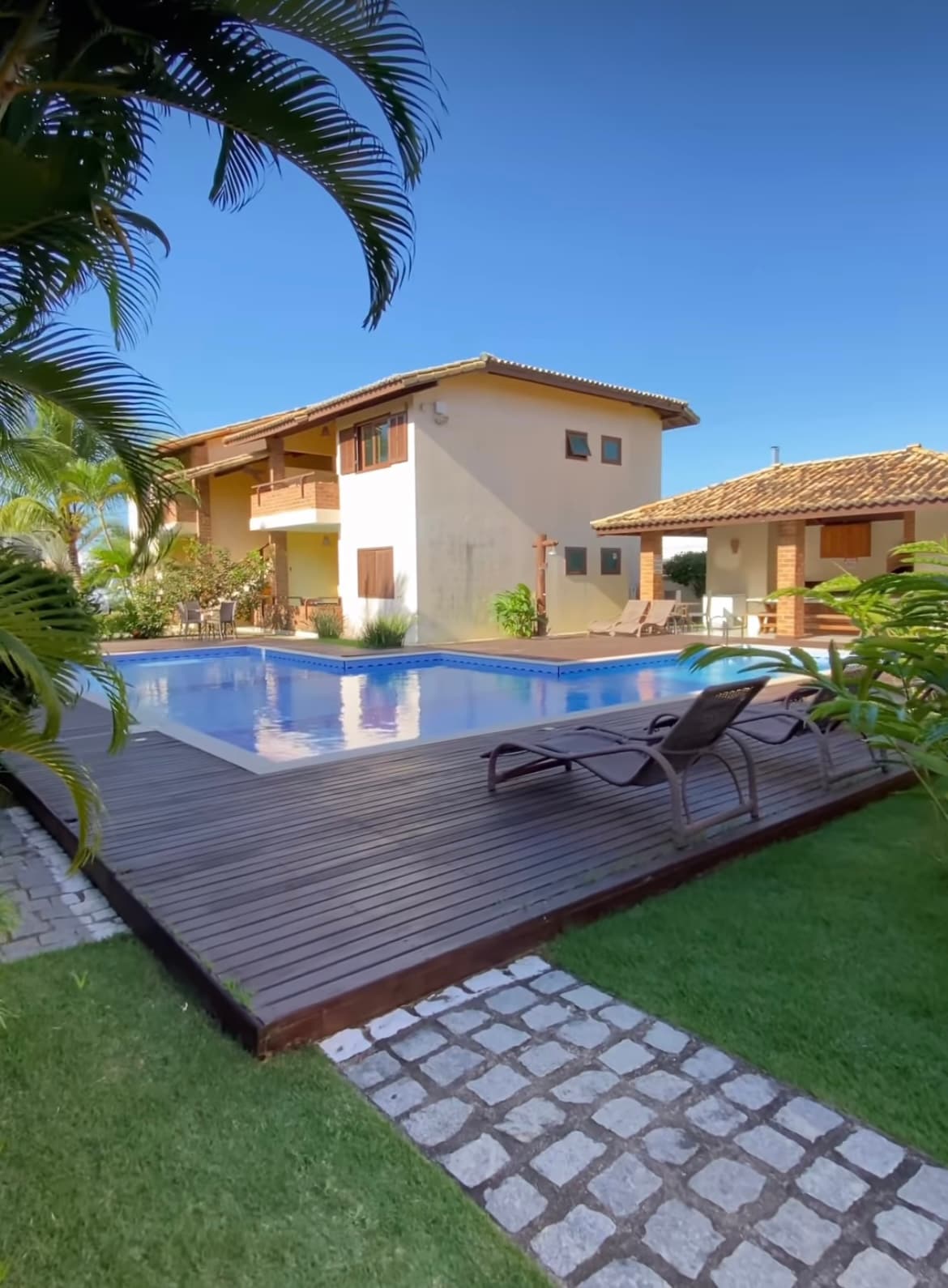 Detached house on a 800m² lot with swimming pool and large garden, 400m from Taperapuan beach, one of the most beautiful on the northern shore. The house is individual on the lot and has a beautiful swimming pool and leisure area with a barbecue and 5-burner stove. All rooms have split air conditioning. Single beds can be converted into a double bed. Close to Axé Moi, Arena Axé Moi, Beat Beach and others. There is a supermarket and pharmacy near the house.