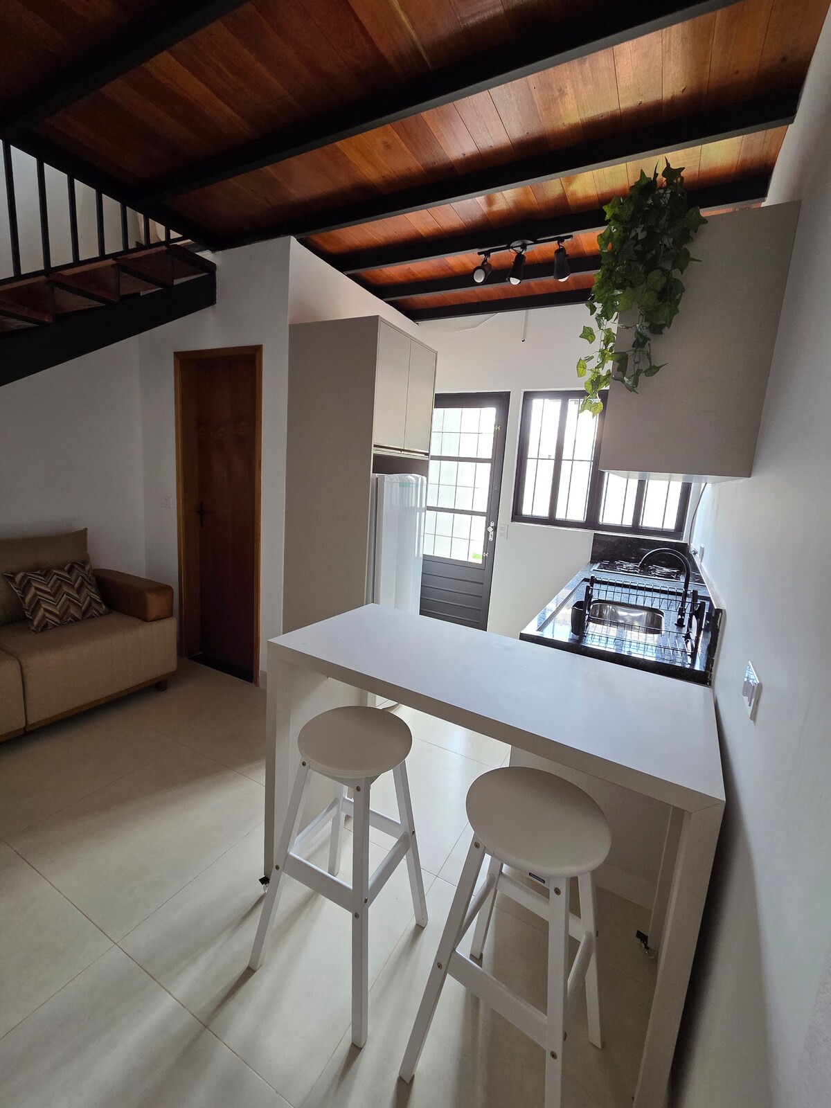 The accommodation has 1 bedroom equipped with a double bed and a double mattress, and air conditioning, ideal for a comfortable rest. It has a full kitchen, with refrigerator, stove, airfryer and microwave, perfect for preparing your meals. TV, Wi-Fi, shower with hot water, 127 volts sockets and garage for 1 car. We offer free electric car charger with a power of 2.4 kW, bringing more convenience.