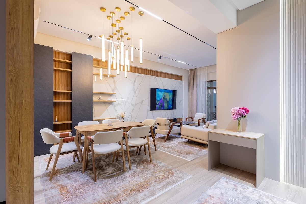 ✨ Spacious 3-bedroom apartment in the very heart of Tashkent City (Boulevard Residence) Welcome to your cozy and modern apartment in the prestigious Boulevard residential complex! 🏙 The 100 m² apartment is located on the 4th floor of a 7-storey building and is ideal for both business trips and vacations in Tashkent. 🛋 What awaits you: • A bright living room with a modern interior and a large TV