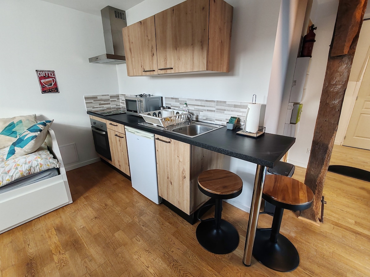 Large ground floor studio with a natural and refined atmosphere located in the center of a quiet village. The accommodation has all the necessary comforts, equipped kitchen and bathroom, as well as a sitting area (sofa bed) and a fixed bed for two people. Outside, the place has a wooden deck, as well as private parking. Ideal for one, two or three people.