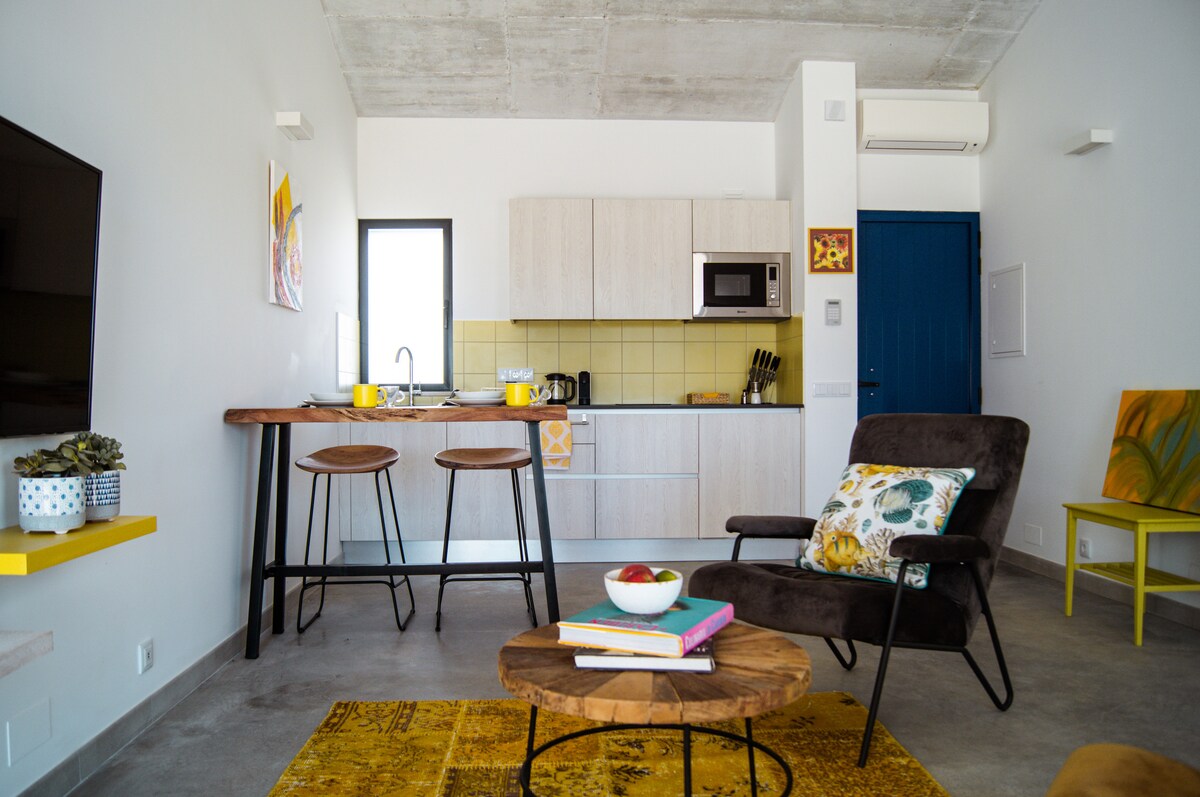Four generously sized 1-bedroom apartments with hotel services, embedded in the quiet rural countryside, 7 kms from Tavira, enjoying panoramic views over ocean, coastline and countryside. All apartments are provided with a covered private terrace area and are fully equipped for prolonged stays of two adults, offering privacy, comfort, independence and tranquility. Continental breakfast, self-service refreshments and snacks from lounge included. We offer a long stay discount from 7 days and up!