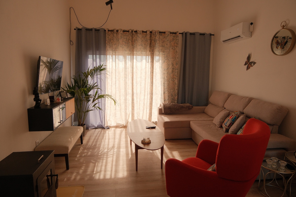 The flat situated in the first floor in the centre of Fuseta has three bedrooms, a Residential dining room, a kitchen, a balcony and on the other side a big terrace. All windows are big and ground low-pressure area. The flat disposes of a garage parking lot in which normal small cars fit well in, big Caravans or coaches, however, not. Please note that for check-ins between 22 o clock an 24 o clock, an extra fee of 20€ will be charged.
