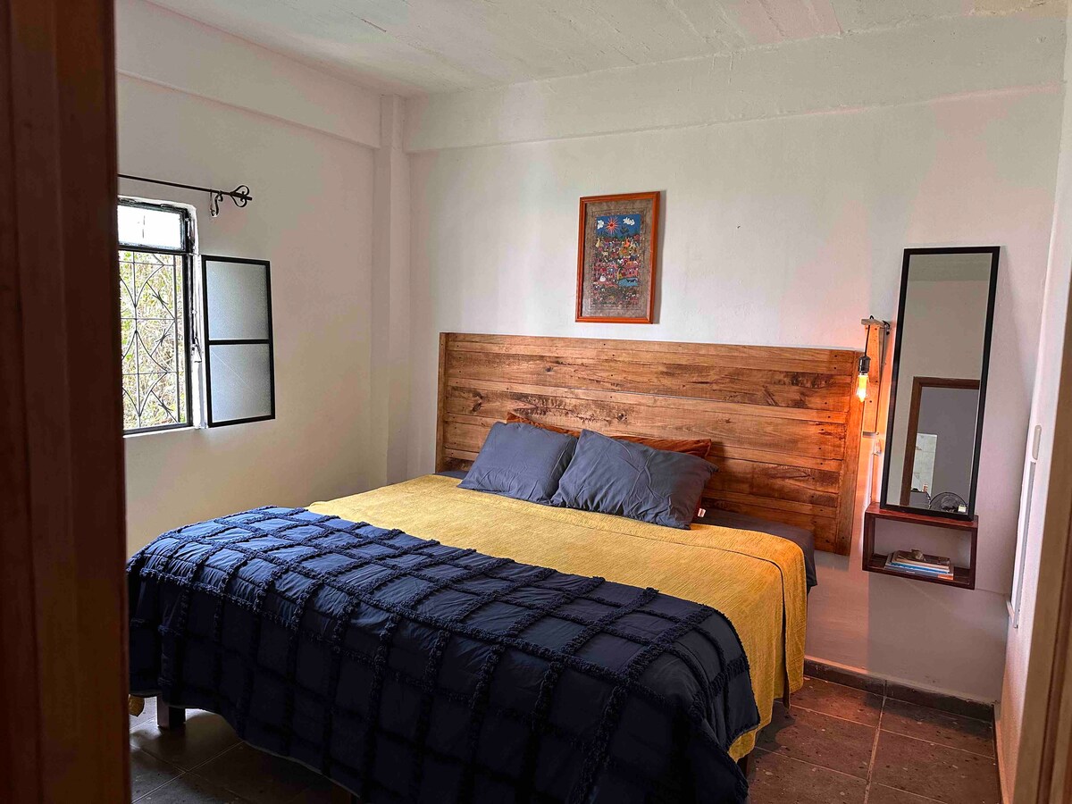 Apartment in the heart of the city of Taxco, a few steps from the famous silver flea market, municipal market, in front of the bus terminal with all the amenities at your fingertips. The accommodation is full of charm, comfortable, bright and in the heart of the City of Light. It has two bedrooms with a double bed and one with a single bed, Internet, a bathroom and a cozy living room. On the top floor you will find a Roof Top with kitchen service with a panoramic view