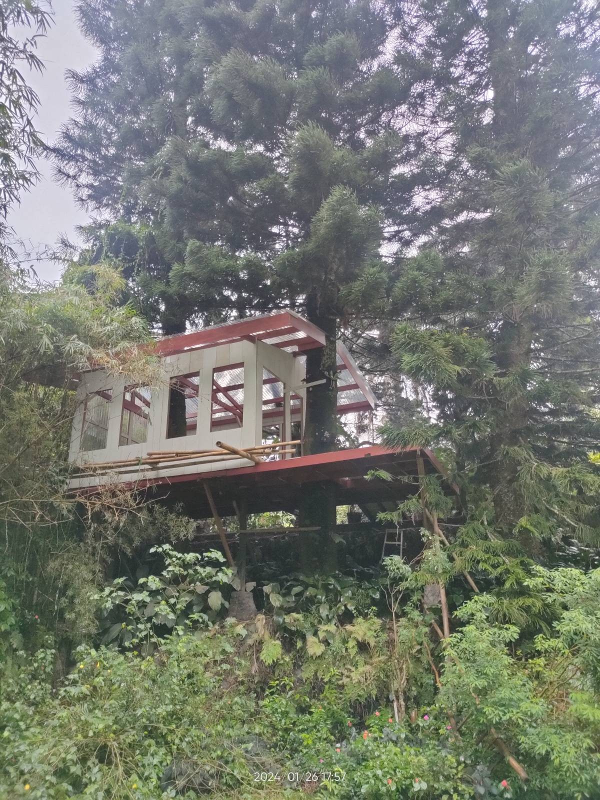 A classic mountain home with classic architecture, cool air, and quiet surroundings. Enjoy slow mornings on the balcony, perfect for coffee and misty views. Three bedrooms and three bathrooms are open, offering simple comfort. The house keeps its original charm with warm wood accents and a cozy feel, creating a peaceful, grounding stay close to nature.