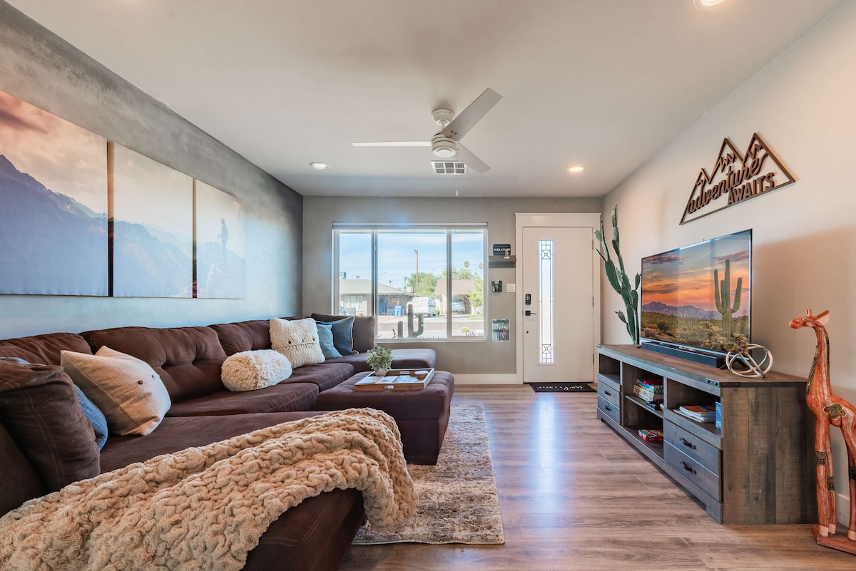 4BR desert themed home w/ pool & all the essentials to enjoy good times with friends and fam! Enjoy fast WiFi, 3 smart TVs, a patio, grill, games & puzzles! Located in Downtown Tempe w/ASU, Tempe Town Lake/Mill Ave, Mullett Arena, A-Mountain, bars & restaurants just minutes away. Centrally located- just a short drive to all surrounding cities & destinations, including the airport, MLB Spring Training, golf courses & the Phx Open, Scottsdale, and Downtown Phoenix (home of the Suns & D-backs).