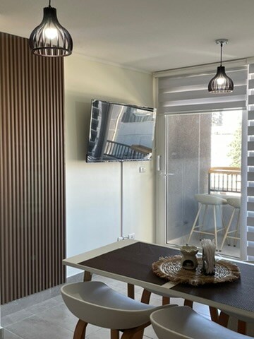 Departamento equipado, Dos habitaciones, principal en suite, cómoda cama de 2 plazas Habitación 2 con cama nido de 1 1/2, Baño 2 completo Cocina americana con comedor un Terraza con preciosa vista a volcanes Ubicado entrada Norte de Temuco con excelente conectividad, al lado de supermercados, Centros comerciales (Portal Francés), Mall Easton, a 7 minutos del centro y a 10 minutos de Mall Portal, donde podrás disfrutar de exquisitos Restaurantes, pubs y Casino Dreams, Estacionamiento.