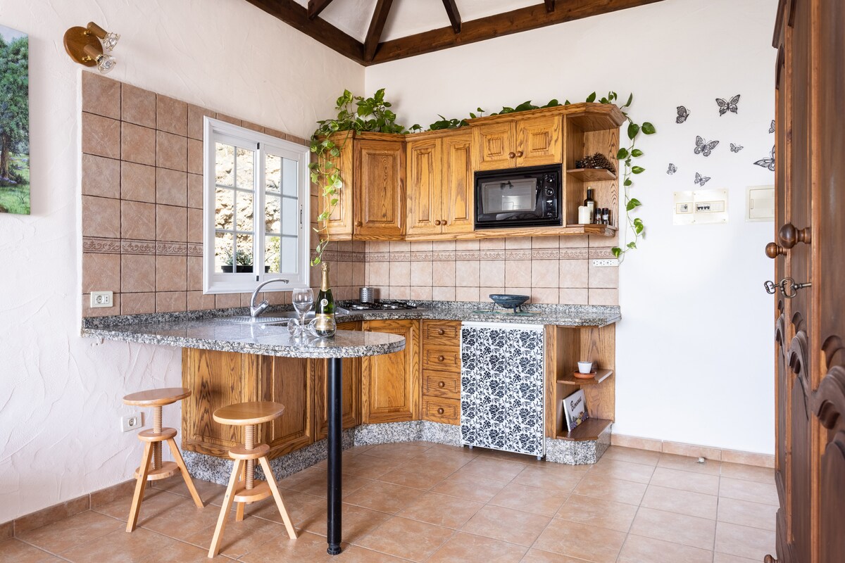 It has 501MB Fiber Optic and work areas. It is in a privileged setting among vineyards and fruit trees with unparalleled views. On one side, it has unique views of the sea and the Roques de Anaga (with magical sunsets), and on the other, La Cordillera, which is part of the Anaga Rural Park declared a UNESCO Biosphere Reserve. The nearest neighbor is 100 meters away. If you are looking for tranquility, privacy, disconnecting and enjoying nature, it is an ideal place.