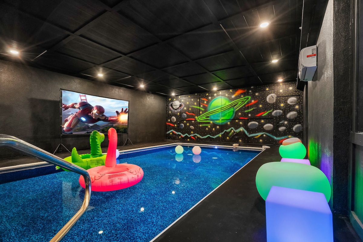 Welcome to Smoke on the Water: your luxury mountain retreat! ⛰️ Whether you're swimming in the private indoor pool 🏊, relaxing in the hot tub under the stars ✨, or enjoying coffee fireside with stunning views 🌄, this cabin is made for memory-making. With a theater, game room, modern kitchen, and space for the whole crew, it’s the perfect launchpad for family connection and adventure. 🌲 15 min→ GSMNP 🏍️ 21 min→ Wildside Adventure Park 🎡 25 min→ The Island 🎢 31 min→ Dollywood