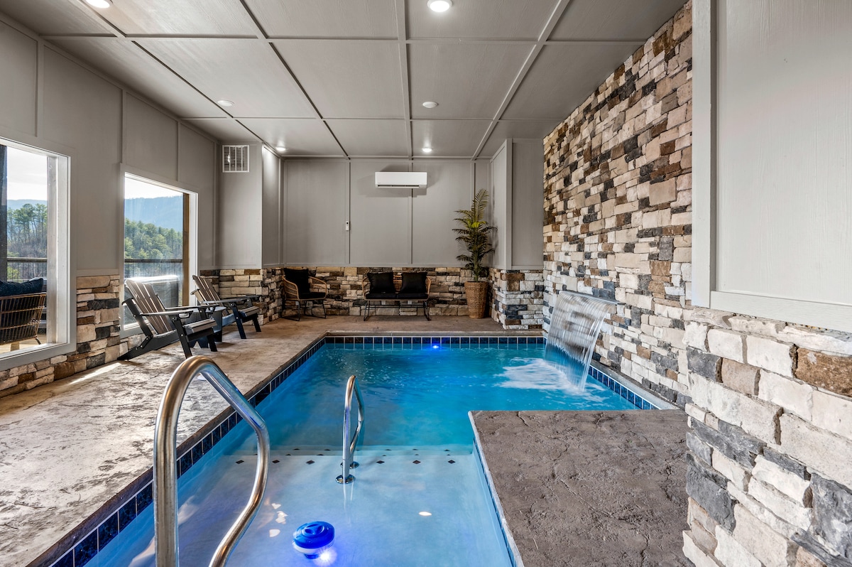 Splashtastic Cabin Indoor Pool + Outdoor Fireplace