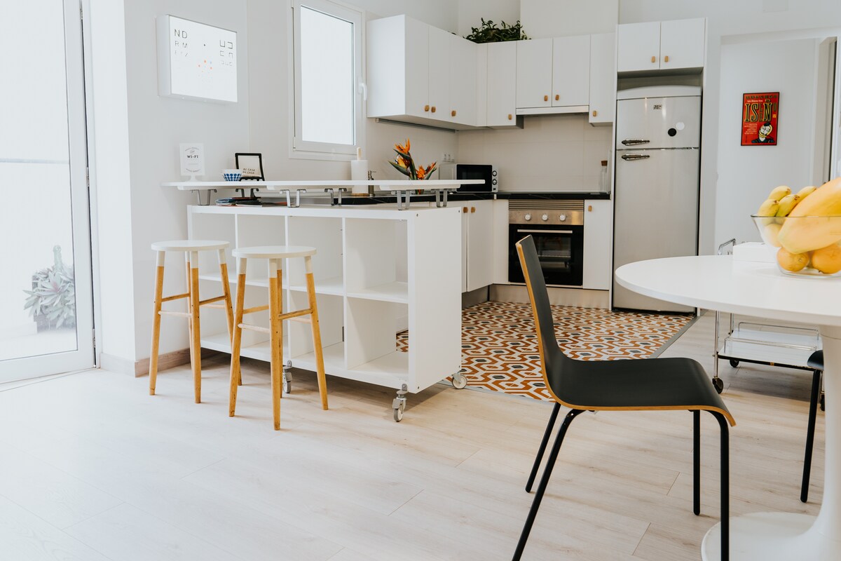 El apartamento está exquisitamente decorado y se ubica en una de las zonas más pintorescas de la ciudad, localizado en un edificio emblemático, originariamente antigua fábrica de tabaco y en la actualidad edificio de viviendas recién reformado. A escasos metros a pie de los principales museos, TEA, MUNA y de otras localizaciones como el mercado Ntra. Sra de Africa, Calle de la Noria, Auditorio.