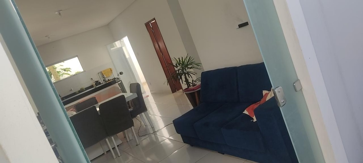 Relax with the whole family in this quiet accommodation. Upon arrival in the neighbouring city, Assaí Atacadista, the Ifbaiano Technical School and residences. Description: - 3 bedrooms (1 ensuite) - 3 bathrooms (suite with private bathroom) - Accommodations: 1 queen bed + 2 double beds - Large kitchen - Room - Winter Garden - Gourmet area with BBQ - Swimming pool - Garage for 2 cars Ideal for families and groups of up to 4 people during tours and work activities.