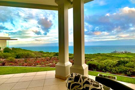 Experience the ultimate coastal lifestyle in our luxury cliff-top home with stunning ocean views from every room. Our organic modern design features natural wood and designer soft furnishings. Dip in our semi heated pool, or enjoy our yoga & chill deck or cook a meal in our designer kitchen. Complete with solar power system & set in a private nature reserve. Just 25 mins from George Airport, 15 mins from the Garden Route Mall and Wilderness. Come unwind in comfort & style.