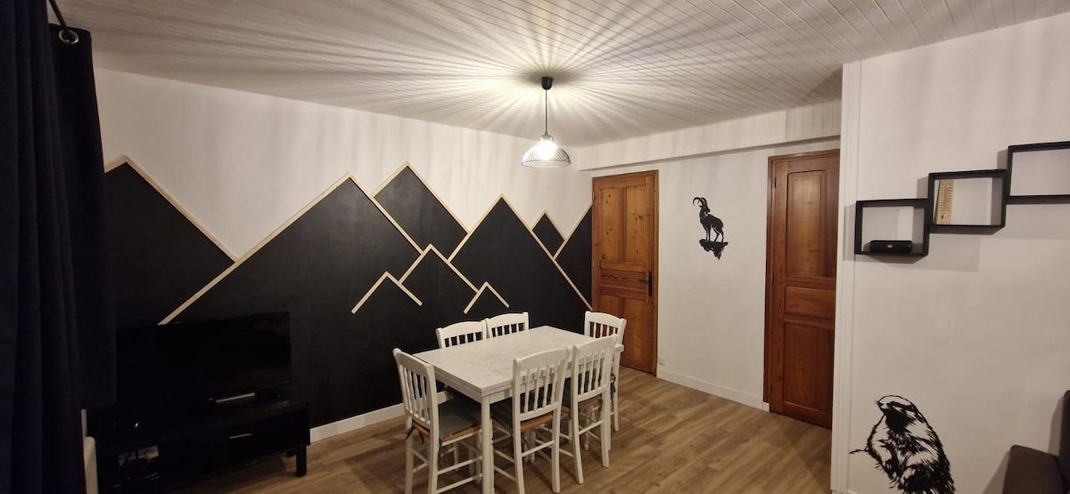 Take it easy at this unique and tranquil getaway. This apartment is on the ground floor of a family home. Inside, you'll find: - Living room: equipped kitchen (induction stove, oven, microwave, dishwasher, kettle, filter coffee machine, toaster, raclette machine, etc.) - Living room: TV, sofa convertible into a 140 cm comfort bed -1 bedroom with a 160 cm bed -1 bathroom with shower, washing machine and toilet (hairdryer) - Ski room equipped with a boot dryer - Terrace