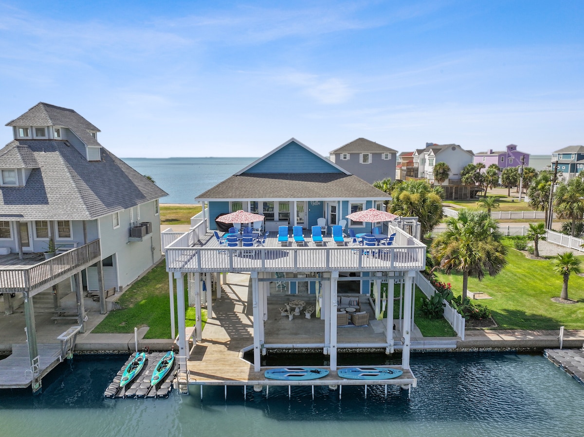 A canal front, home with a a private dock, two patios with two kayaks, two paddleboards for you to paddle to watch the breathtaking sunsets. Located on the beautiful west end of Galveston Island, one canal from West Bay, fish right off your private dock with green lights! This waterfront space sleeps 12 comfortably, sits on the beautiful canal in the desirable Terramar Beach Subdivision and offers easy proximity to both the Bay and to the Beach. Private boat ramp and neighborhood pool.
