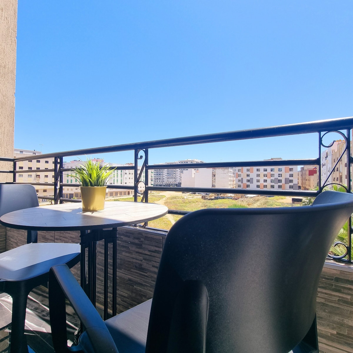 Located in the heart of the wilaya center, with the possibility of a private paid parking space in Sterrain, you will find the best restaurants in Tetouan 1 min away as well as various shops Carrefour market, grocery store, butcher shop, hammam, hairdresser, Fit one gym, several renowned cafes, ice cream, French pastries, playroom for children up to 8 years old, absolutely everything within a 3-min walk. Secure neighborhood with 24/7 police presence. Unique beach 10 km from Tétouan