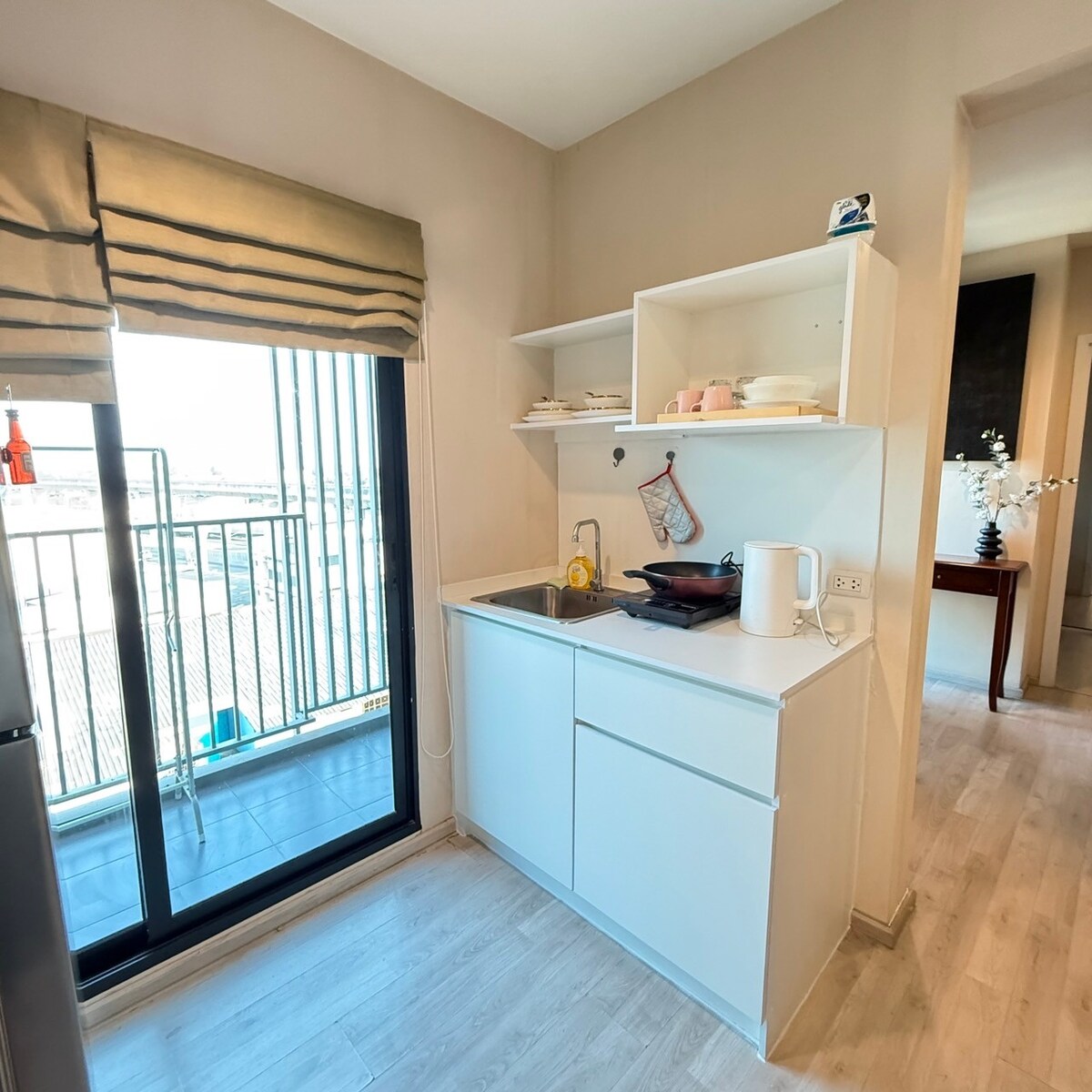 Luxury condominium on Ratchaphruek Road Experience a superior living experience with a private low-rise condominium, spacious rooms with full amenities such as swimming pool, fitness center, co-working space, garden and 24-hour security. Close to shopping, restaurants and tourist attractions. Easy to get around. Only 10-15 minutes to the Purple Line MRT (Bang Rak Noi Tha It/Tri Ma station) and close to the Sri Raj Expressway. You can get to the city center quickly. Free shuttle service from MRT station to the accommodation.