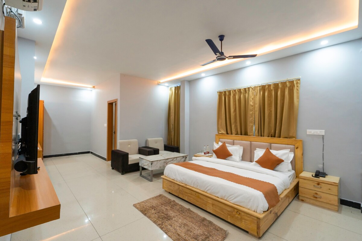 "One of Corbett’s most refined private villa experiences for small groups." No detail is overlooked at this charming boutique suite, where elegance and comfort meet in perfect harmony. Thoughtfully designed for couples and families alike, every corner whispers luxury—from the warm, earthy interiors to the breathtaking panoramic mountain views. “Limited availability on weekends. Early reservations recommended.”