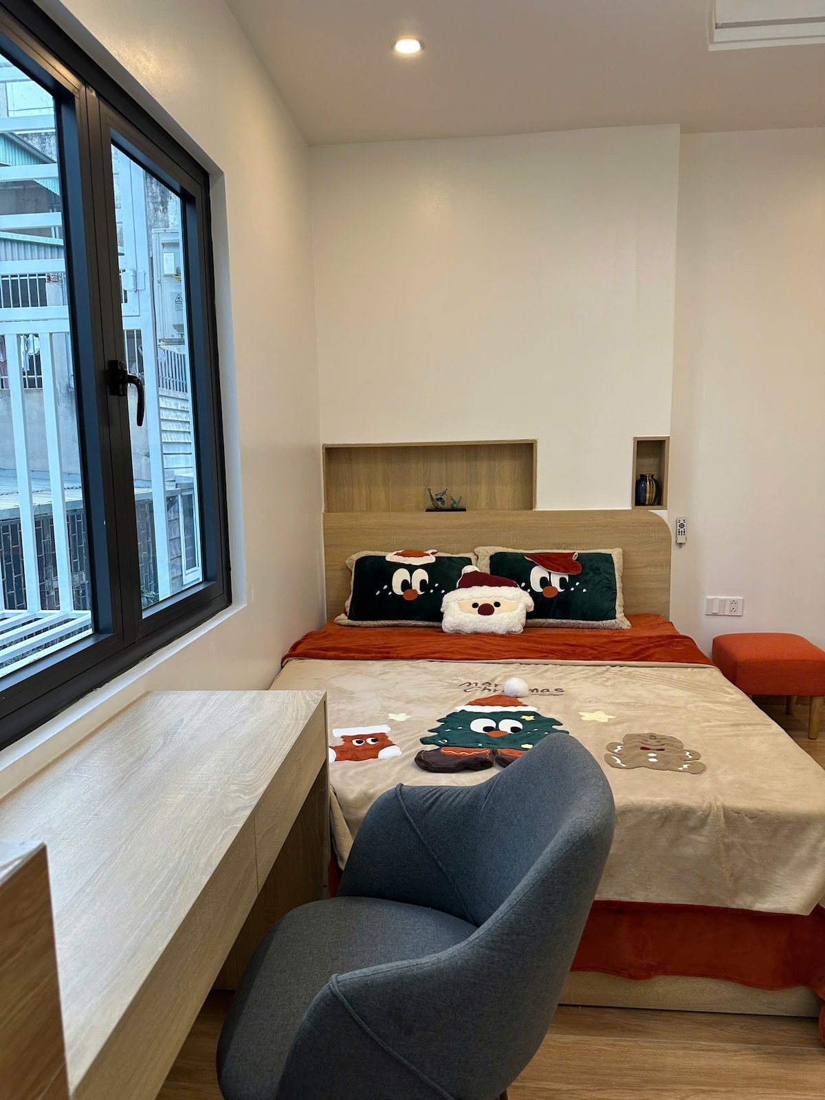 This is a spacious studio apartment located on the 22nd floor of block C2, D’Capitale Complex. With an area of 35m2, the apartment with wooden floors creates a cozy but still airy feeling with a large balcony. Beside the queen bed, the apartment has 1 bookshelf, a large sofa, and a dining table for 2 people. The kitchen is fully equipped with kitchen utensils, suitable even if you have a long stay. The apartment also has a smart SAMSUNG TV with Netflix and fast internet for remote working.