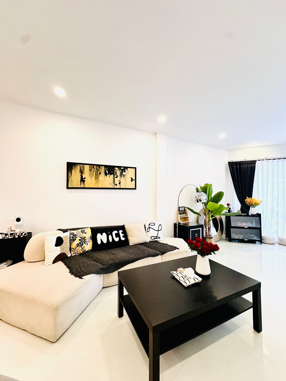 Welcome to my apartment, I hope you have a great trip to Thailand. The house is located in RAMA9, a loft apartment delivered in 2024. The room is about 70 sqm, including two bedrooms, one living room and dining room, one kitchen and two bathrooms, easily accommodating 5 adults. (‼ ️ tps: When the number of guests in the order is 1-4, there is one bed in each bedroom by default. If you need to add a sofa bed in the living room, please fill in the number of people as 5 at the time of booking, and contact us after booking to inform us, we will arrange staff to prepare the sofa bed before your stay ‼ ️) The price includes the entire house, fitness center, swimming pool, and shared office space.