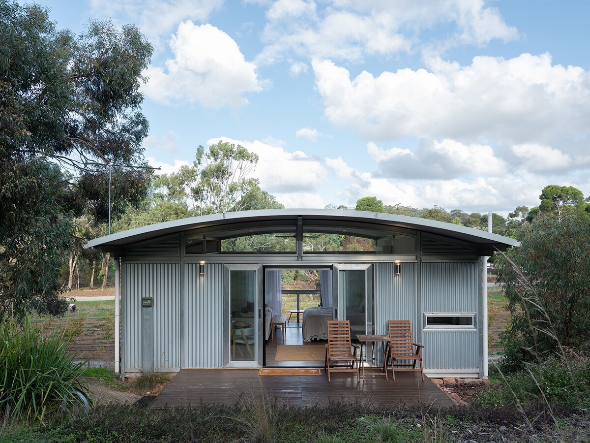 Unwind in this delightful, inclusive & accessible studio on a hobby farm in the Barossa Valley, close to the Adelaide Hills, historic Gawler, 40min from the beach. Drawing on Barossa heritage, it showcases reclaimed corrugated iron walls & roof. Warm yet roomy & comfy: queen bed, kitchenette, aircon+ceiling fan. Breakfast supplies. Wheelchair ramp, wide doors. Views of vineyard, nature, garden. Picnic spot, bush trails, wineries nearby. LGBTQ+ welcoming. Perfect for romance or a quiet break.
