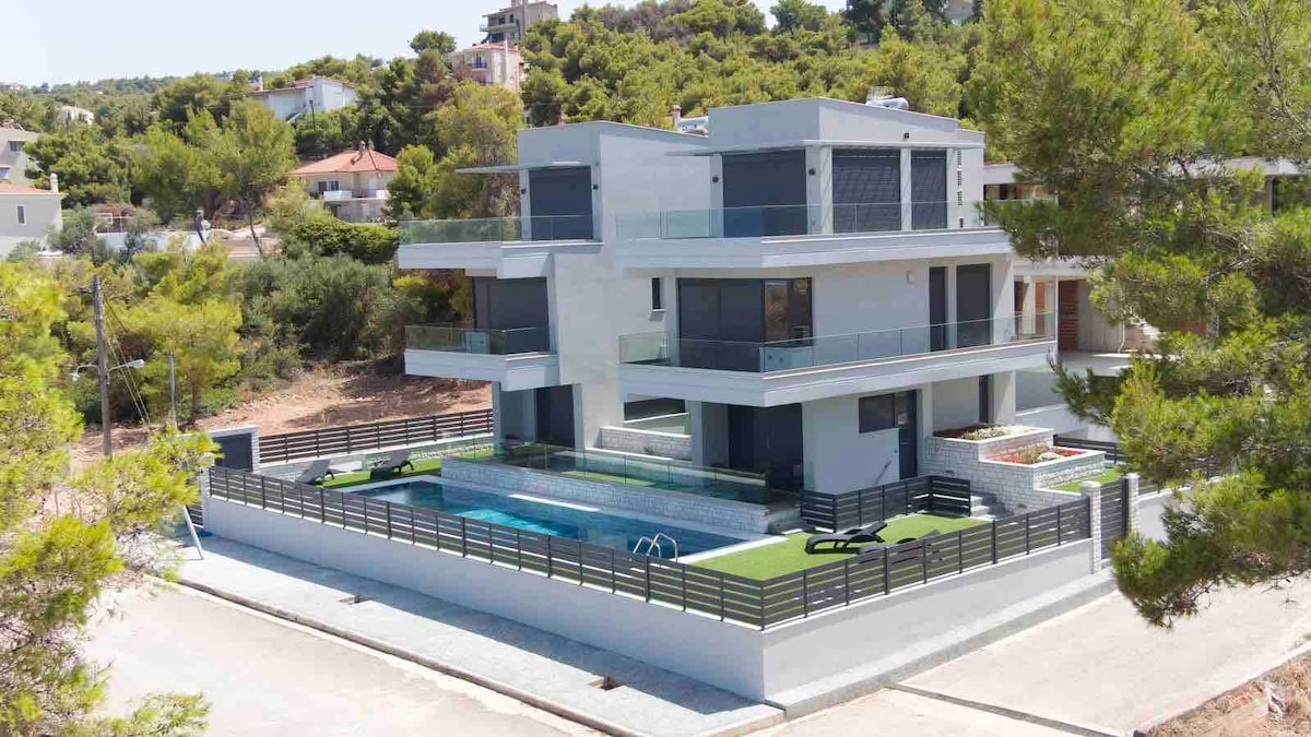 Seafront villa with private beach 1 hr from Athens