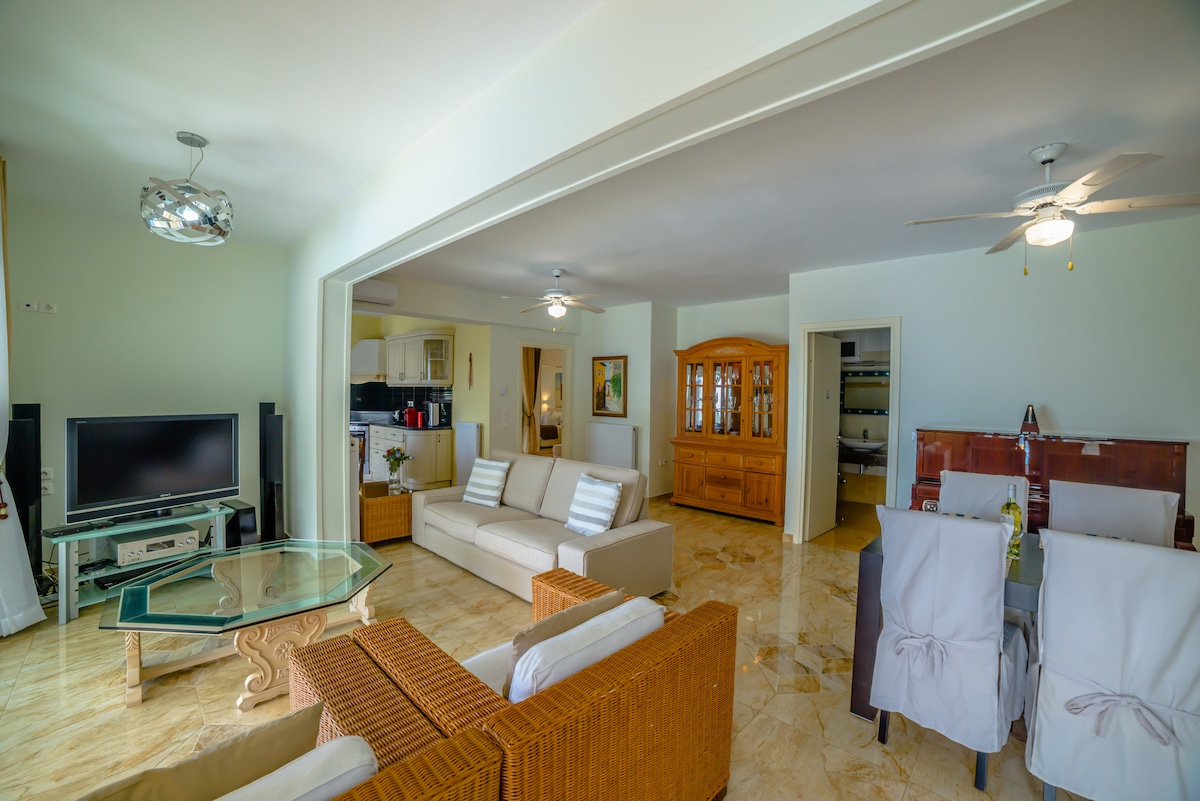 Це унікальне помешкання має власний стиль. Тут ви знайдете усе необхідне для гарного відпочинку. У цій новій квартирі ви зможете розслабитися і отримати задоволення від комфорту, який забезпечать якісні меблі та побутові прилади. Усього декілька кроків від будинку і ви опинитеся на чудовому гальковому пляжі Іонічного моря. Квартира знаходиться в районі, де можна відвідати кращі таверни ти ресторани Саранди.