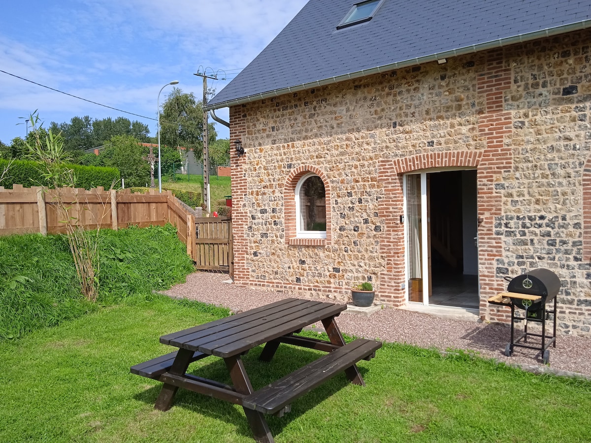 Come and rest at the farm, in the old bread oven of the renovated farmhouse. Enjoy the wood-burning stove, Scandinavian wood decor and winter garden. The library is at your disposal and you will benefit from many amenities (barbecue, garden furniture, deckchairs, dishwasher, washing machine, etc.). The sea is a stone's throw away (30-minute walk, 2 km drive) and beautiful walks on foot or by bike will allow you to discover the Pays de Caux (GR21, marked trails).