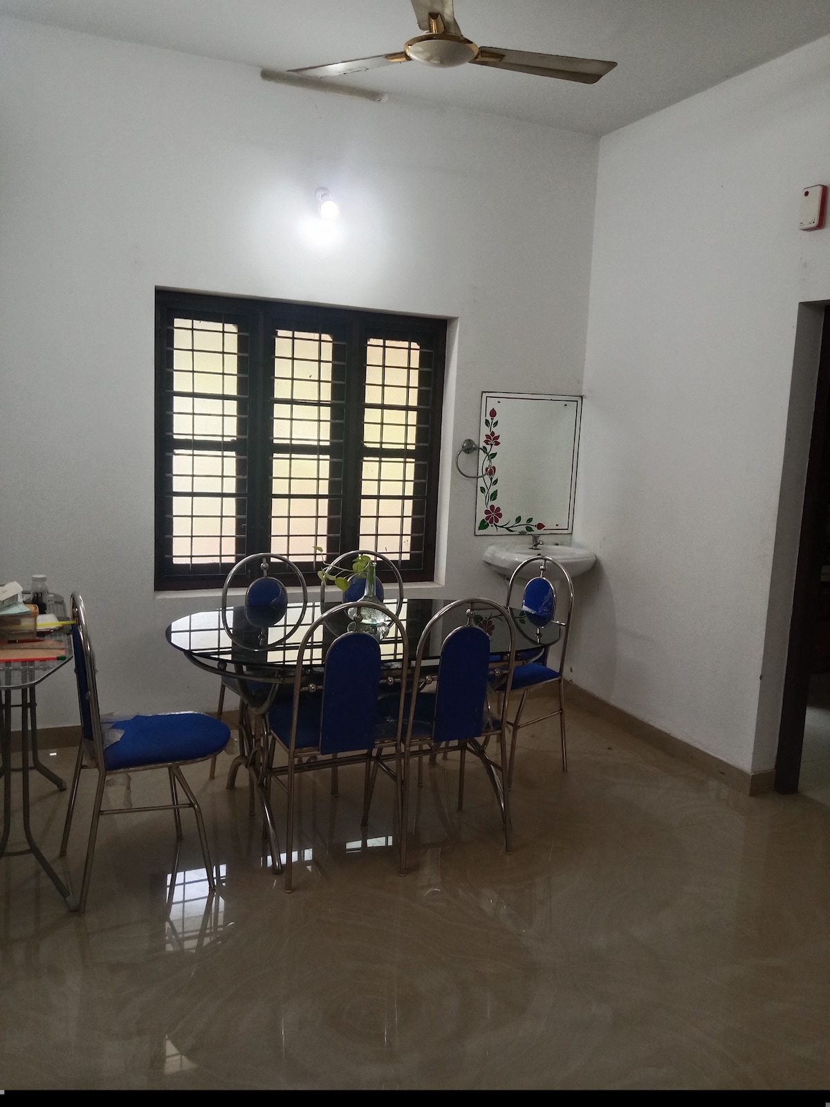 Relax with the whole family at this peaceful place to stay. At the banks of tranquil Vellayani lake (not lake front), access to sunset point is 50mtrs Recently renovated house is located in 12 cents of land, with many trees and ample parking space. Terracotta tiled flooring adds charector to this nature freindly place! 1.5 km to major vellayani Devi temple 10 km to Padmanabha swamy temple 12 km to Kovalam beach 17 km to Lulu mall 24 km to technopark