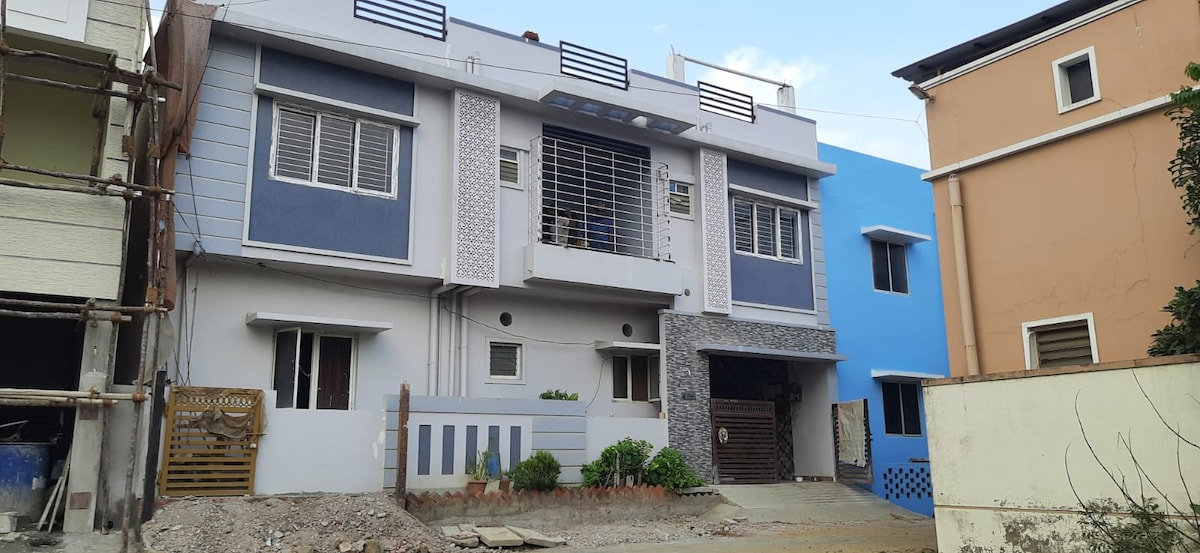 The house is located in a safe area and away from the hustle & bustle of the city and nestled in the sub urbs of the IT highway . It has ample windows and 2 balconies. It is very spacious and very calming . Lots of sunlight and great air flow. All necessary amenities are available including smart TV , fridge, washing machine, microwave oven, high speed wifi, CCTV etc. You will feel like its a home away from home.