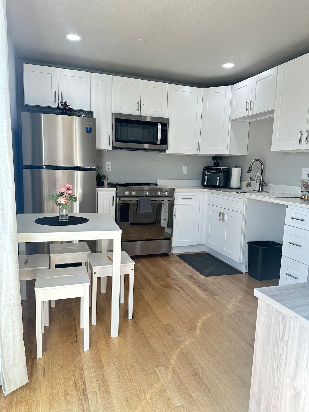 Welcome to this refined 1,400 sq. ft. luxury private suite with a private entrance, set in a serene neighborhood near parks, shopping, Topgolf, dining, and entertainment. Featuring a gourmet kitchen, elegant living room with an 88” Smart TV, a primary suite with walk-in closet and 75” TV, a stylish guest room with queen bed and 52” TV, plus a private laundry room with full amenities—this residence offers comfort, sophistication, and convenience.