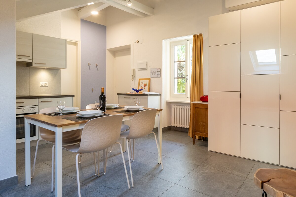 Experience the sweetest of awakenings in a well-kept and elegant apartment, with a beautiful view of the lake from every room. Delight yourself with our delicacies and relax in a comfort that combines ancient and modern in a smiling style. Registered property 013030-CNI-00006 House consisting of a large living room embellished with a large fresco representing a glimpse of the lake and furnished with elegant furniture, a loft equipped with a sofa and armchair that can be used as floor beds for children looking for an alternative experience. Fully furnished kitchen equipped with dishwasher, traditional oven/microwave, fridge, toaster, kettle, coffee machine and supplied with delicacies and basic necessities. Bedroom with two single beds also enriched with a wall fresco for a restful sleep. Large and elegant double bedroom with beautiful views of the lake in several directions. Two picturesque bathrooms complete with shower and including body care and hygiene products. Access to the house is independent, guests will have access to every area of the apartment floor and its garden. We are always available from the moment of arrival until departure, also to recommend the most exclusive tours and lake activities Brienno is an ancient and unspoiled Celtic village. Come and experience its portals, arcades and stone pavements embraced by the lake and green mountains. The silence here can be surreal, and will accompany you on a journey back in time. Bus lines C10/20 that depart every hour or so both to the upper lake and to Como. Boat trip on Sunday morning with return in the evening after sailing across the lake. From the village, you can climb to the mountains of Brienno with the characteristic farms (which can also be visited on request) or, for good hikers, you can go further to reach Alpe Comana and Schignano, also passing through the "Scala Santa" on a very steep mule track. Every morning in front of the Church (from 7:30 a.m. to 9:00 a.m. from Monday to Thursday) you can buy basic food items from Davide, a merchant who with his mobile store offers typical products of Lake Como and Lombard culture such as cold cuts, bread and cheese. You can also buy fruit and vegetables on Mondays from 11:00 a.m. to 1:00 p.m. and Fridays from 5:00 p.m. to 6:00 p.m. Just 10 minutes by car you can find well-stocked supermarkets. 2 km away towards Argegno you can eat in a renowned Lake Como restaurant called "Il crotto dei Platani" with veranda and garden on the lake. Starting in August, the Bar/Restaurant/Pizzeria will also open right in the center of Brienno, within walking distance of the apartment.