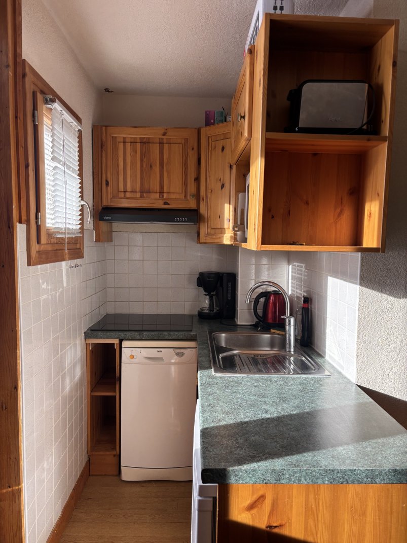 Refurbished cabin studio of 17 m2, ideal for 2 people, but can accommodate 4 people It has 4 beds, a double sofa bed in the living room, and 2 foldaway beds in the entrance 2 min walk to the ski lifts (150 m) and close to all shops, a free shuttle stop is just down the residence The apartment has a dishwasher, coffee maker, toaster and kettle, as well as a ski locker Linens, towels and cleaning are included Free wi-fi