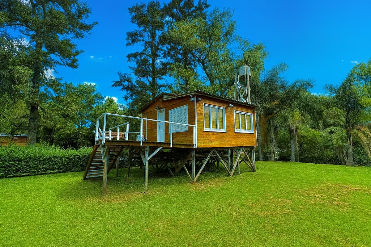 House with unique details in a lagoon exclusively for guests. It has a sandy beach for entering the lagoon and a shared pier for exiting to the Carapachay River. It is for 4 people (the armchair works as a bed and underneath is an extra mattress). It has 2 bathrooms and is very comfortable and convenient. It has a floating raft with a mooring for boats and an exclusive park for the house. PETS ARE NOT ALLOWED. DOES NOT INCLUDE LINEN (SHEETS OR TOWELS) ONLY ACCESSIBLE BY RIVER TRANSPORT