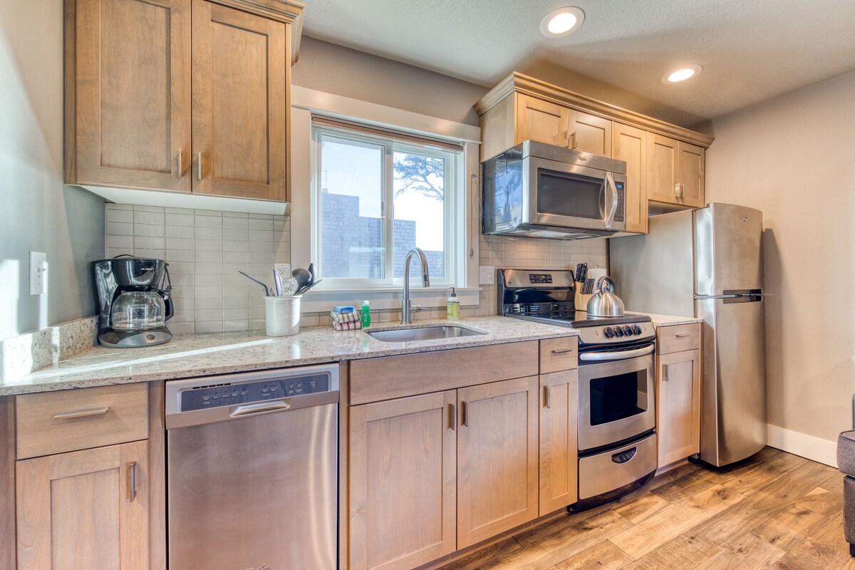 NO PETS Allowed in this Unit. This is a Pet-Free Unit so that we can accommodate our allergy prone guests. Recently updated 1-bedroom oceanfront condo sleeping 4 guests with stunning ocean views and direct beach access. Features include: Accommodations: * 2 queen beds in bedroom * Full bathroom with shower and soaking tub * Radiant heated floors throughout * AC Living Space: * Ocean-view living room with ROKU flatscreen TV * Full kitchen with stainless appliances and dishwasher * Dining table seating 4 * Shared deck overlooking Three Arches Rocks * WiFi and shared laundry Location & Activities: * Staircase to beach * Beachfront in downtown Oceanside * Walk to Oceanside's Tunnel Cave at low tide Additional Info: * Parking with EV charging available * Digital entry lock This is an Oceanfront unit, on the lower level on the South side. As noted in some reviews, the parking lot can be a little tight, and can occasionally be full (there are ten spaces for the ten units, but parking is not assigned). There is street parking immediately in front of the building, and plentiful parking about a block to the North across from the Blue Agate Cafe.
