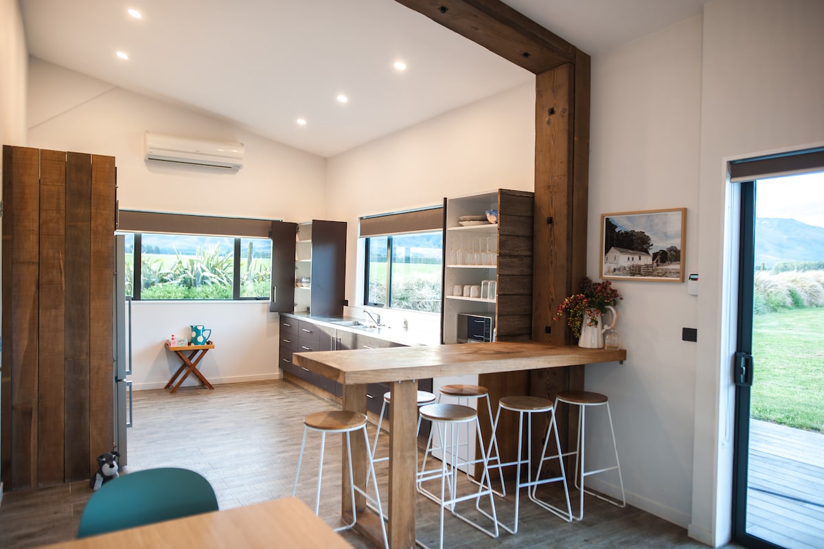 Timms Cottage is a rustic farm cottage and allows you to relax with an indoor outdoor space giving you breath taking views of Mt Dobson, Fox Peak and our farm. The cottage is situated behind the family homestead within our garden on our farm, providing a peaceful and private setting. We are a working farm. We are 10 km from Fairlie which has some great eating places, 3 km from Lake Opuha and half an hour from Mount Dobson and Fox Peak. Tekapo and Geraldine are only half an hour away.
